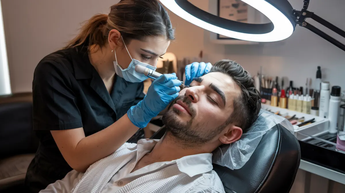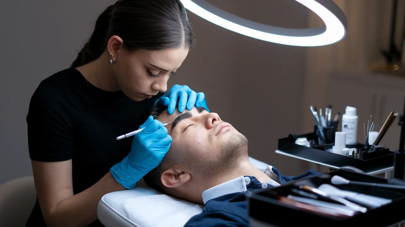 Microblading is a semi-permanent cosmetic tattoo technique that uses ultra-fine needles to deposit pigment into the skin, mimicking the appearance of real eyebrow hairs. For men, our approach is subtle and focused on enhancing your natural brow shape, density, and symmetry—without creating an overly styled or “done” look.