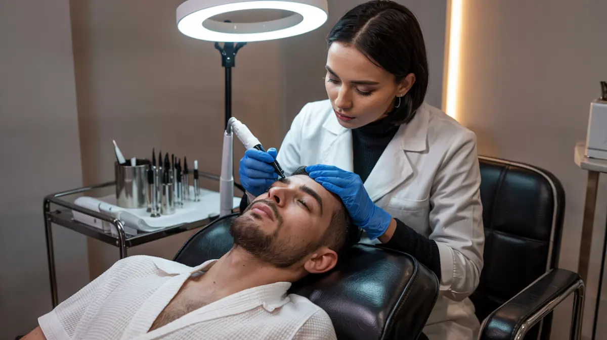 Microblading is a semi-permanent cosmetic tattoo technique that uses ultra-fine needles to deposit pigment into the skin, mimicking the appearance of real eyebrow hairs. For men, our approach is subtle and focused on enhancing your natural brow shape, density, and symmetry—without creating an overly styled or “done” look.